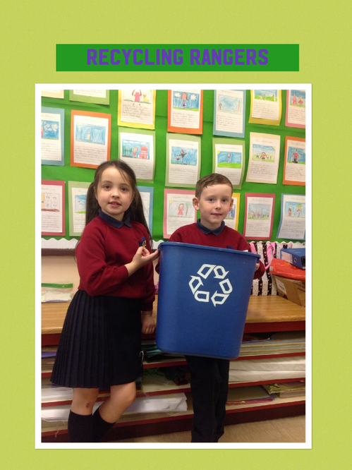 Paper is the main form of waste in our school so we try to recycle as much as we can. We also recycle plastic bottles and cardboard. Each class has a recycling bin that our Recycling Rangers empty at the end of each week.