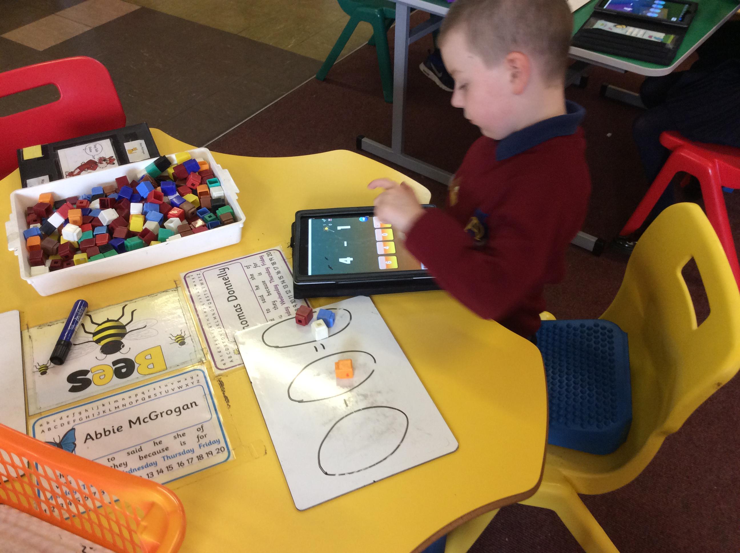 The pupils used the app ChatterPix Kids to describe the properties of 3D shapes.