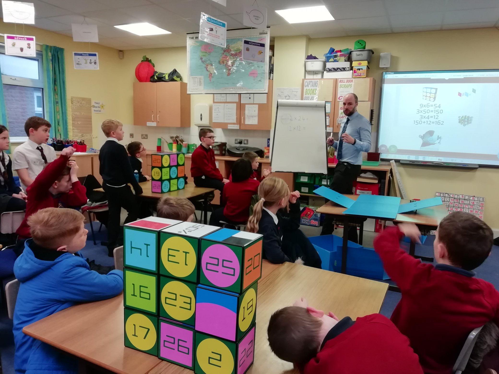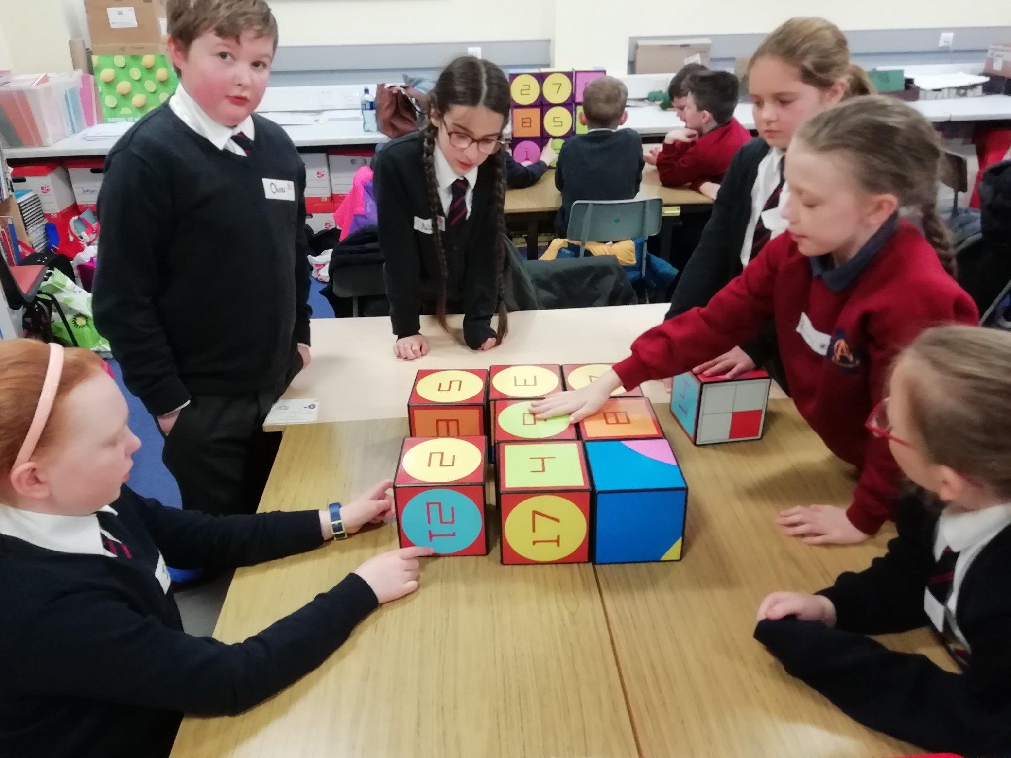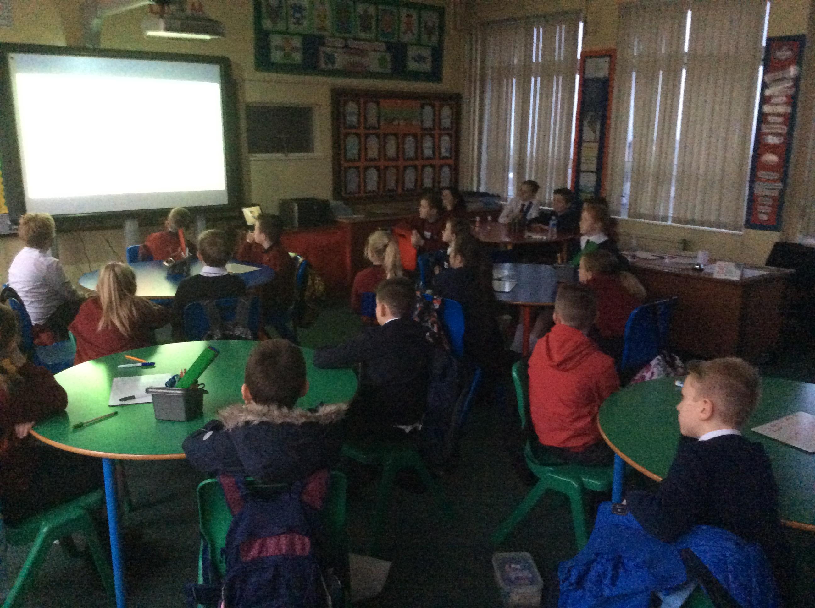 Children frm St. Oliver Plunkett were welcomed into Fairview to work collaboratively on; a class contract based on their shared education project, devloping their mental maths skills with iZak 9 and learning about a range of different countries in Europe.