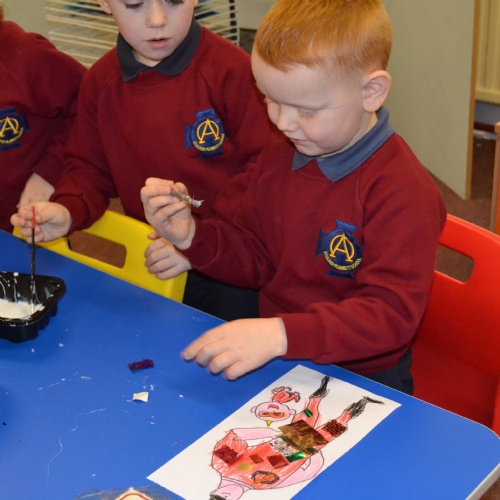 The children thoroughly enjoyed selecting material to create a reflective dress/suit for Cinderella and Mr Incredible to be seen at night. They also enjoyed looking at eachother's and peer assessing.