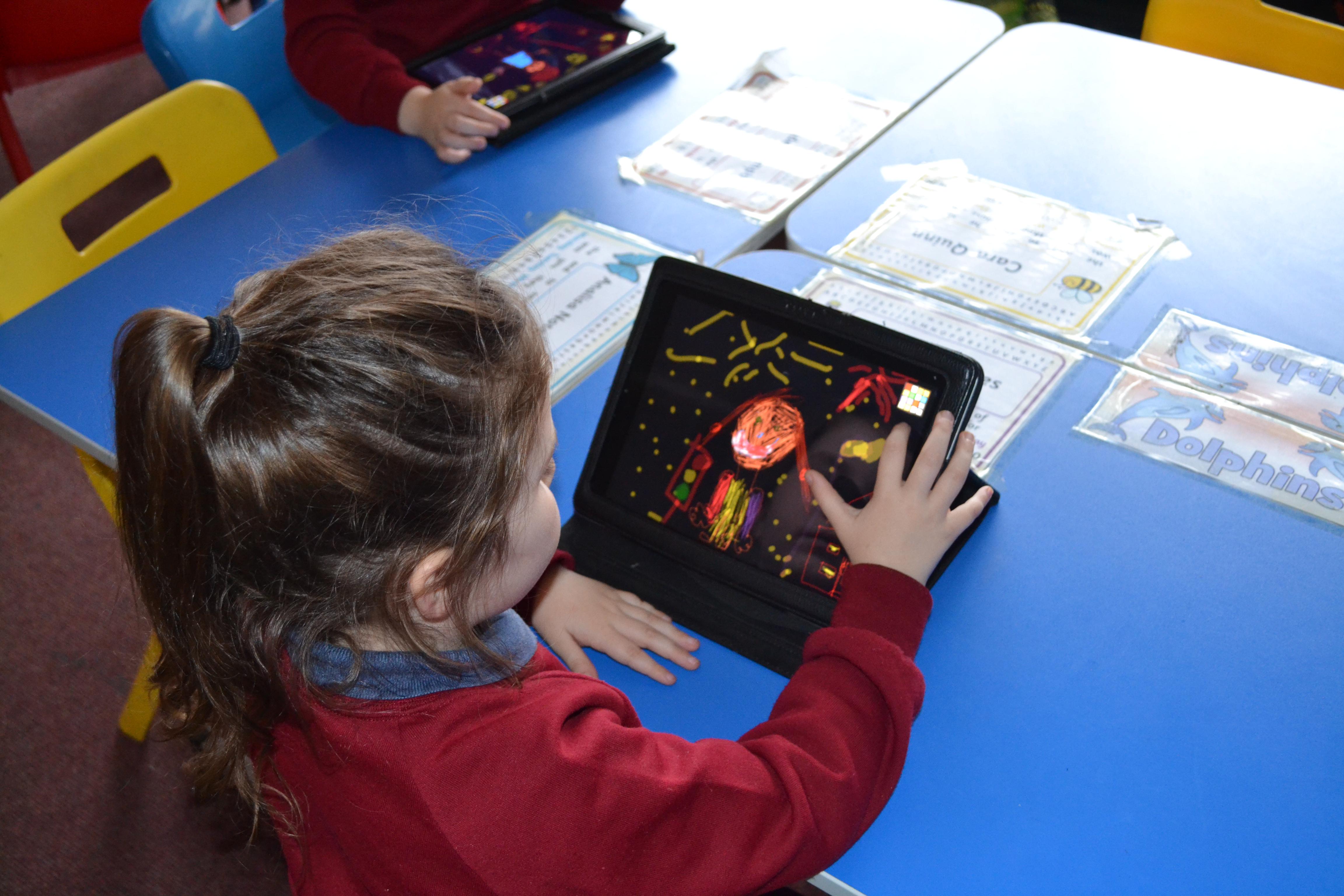 After learning all about light sources the children then created a 'ChatterPix' of light sources outside at night. They began by drawing a picture of themselves outside with light sources around them, using the app 'Colour Pencil'. They then inserted their picture into 'ChatterPix' and described what they could see.