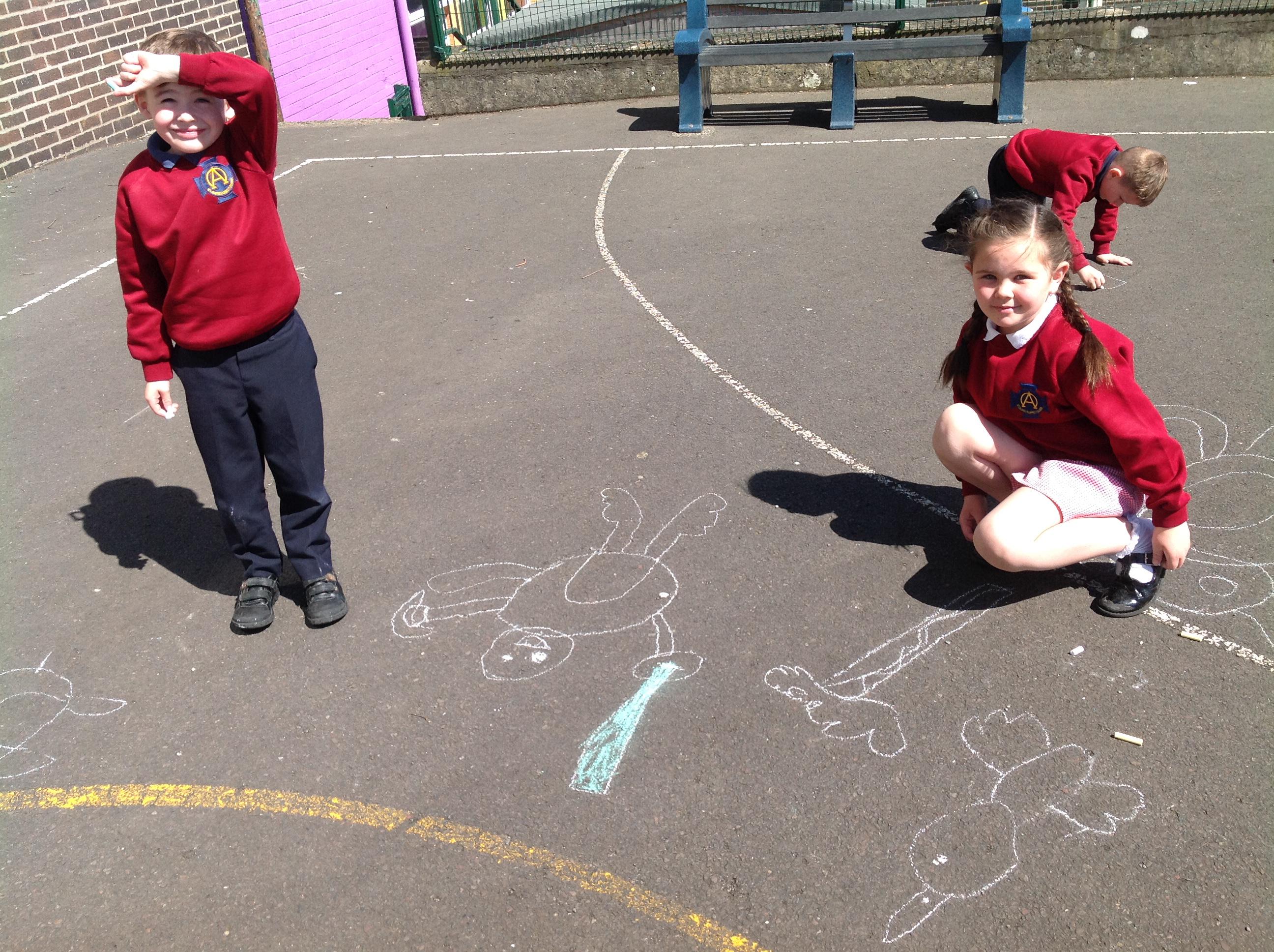 Using chalk to design our own rainforests - making the most of the good weather!